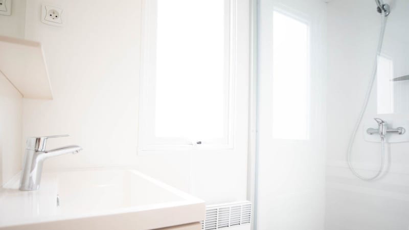 Badezimmer Das Chalet verfügt über ein Badezimmer mit Dusche und Waschbecken, sowie eine separate Toilette.