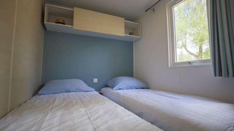 Es gibt ein Schlafzimmer mit einem Doppelbett (160x200) und ein Schlafzimmer mit zwei Einzelbetten (80x200).