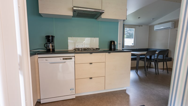 Die luxuriöse Küche hat eine komplette Ausstattung, einen großen Kühlschrank mit Gefrierfach, 4-Flammen-Herd, eine Nespresso- und Filterkaffeemaschine, Wasserkocher, Toaster, Kombi-Mikrowelle und Geschirrspüler.