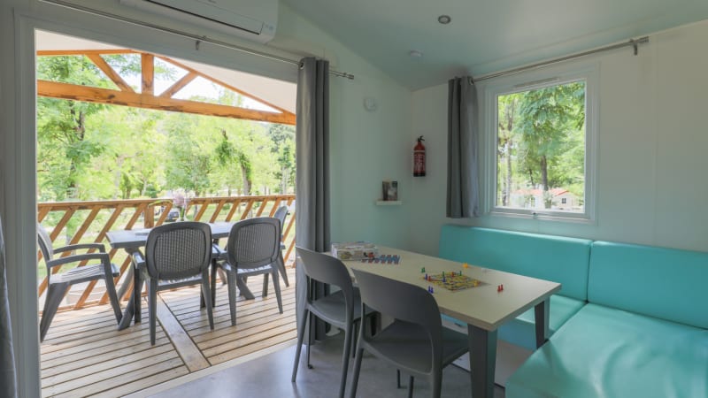 Inmitten der schönen französischen Landschaft steht dieses komfortable, modern eingerichtete, freistehende Mobilheim. Das Mobilheim ist für vier Personen geeignet und steht auf einem schönen, geräumigen Stellplatz.