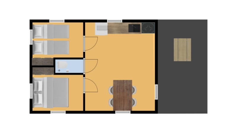 Ein luxuriöses Safarizelt in dem Glamping wieder zum Leben erwacht. Durch die geraden Wände und das hohe Satteldach erhalten Sie ein großzügiges räumliches Gefühl und mehr Offenheit, wodurch Sie die Natur nach innen holen. Dieses Safarizelt ist für vier Personen ausgestattet und hat eine herrliche überdachte Veranda.