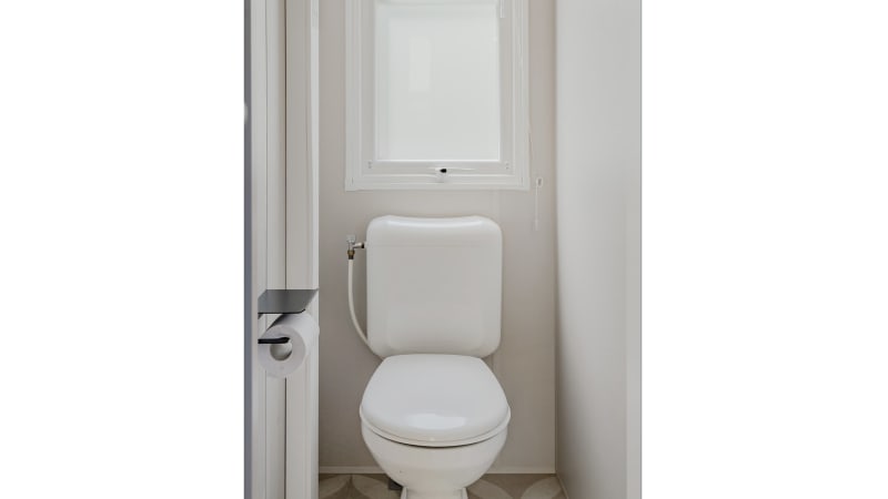 Das Mobilheim verfügt über ein luxuriöses Badezimmer mit geräumiger Dusche und Waschbecken. Auch gibt es eine separate Toilette.