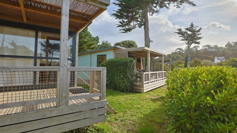 Durch die höhere Lage hat nahezu jedes dieser luxuriösen Fünf-Bett-Chalets einen traumhaften Blick auf die Bucht. Und in der Ferne am Horizont können Sie abends die Lichter von Perros-Guirec glitzern sehen.