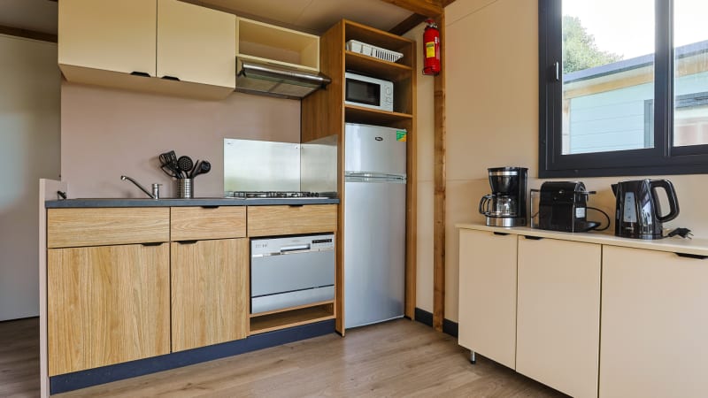 Die luxuriöse Küche verfügt über einen Kühlschrank mit Gefrierfach, eine Mikrowelle, einen Wasserkocher, eine Nespresso und Filterkaffeemaschine, einen Geschirrspüler und einen 4-flammigen Gasherd.