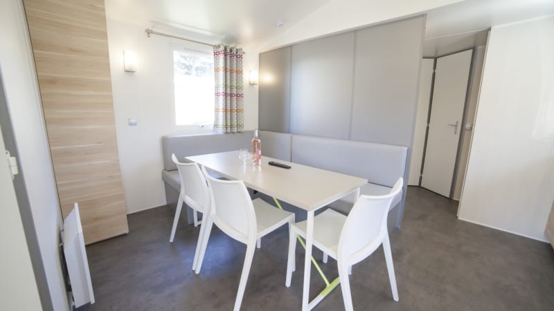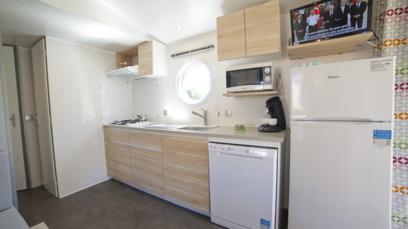 Dieses luxuriöse Dreibett-Mobilheim befindet sich auf einem schönen Stellplatz mit Blick auf das Meer und bietet Platz für sechs Personen. Das freistehende Mobilheim ist ideal für einen herrlichen Urlaub inmitten der schönen französischen Natur.
