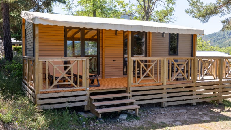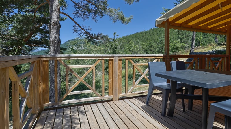 Inmitten der wunderschönen französischen Natur steht dieses komfortable, freistehende Mobilheim für vier Personen. Das Mobilheim befindet sich auf einem schönen, geräumigen Platz auf dem Terrassencampingplatz mit einem herrlichen Blick über die Hügel von Castellane.