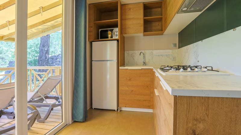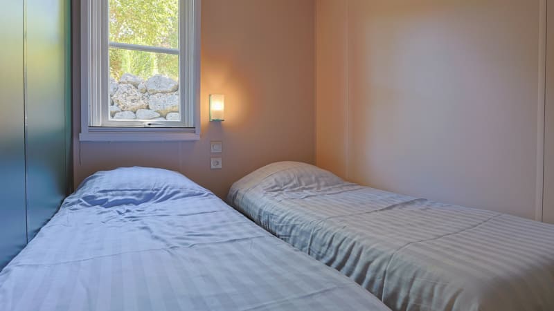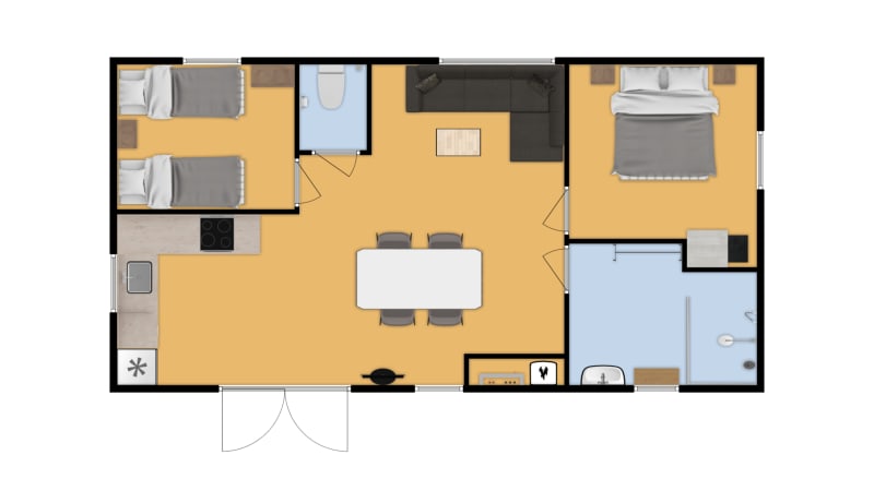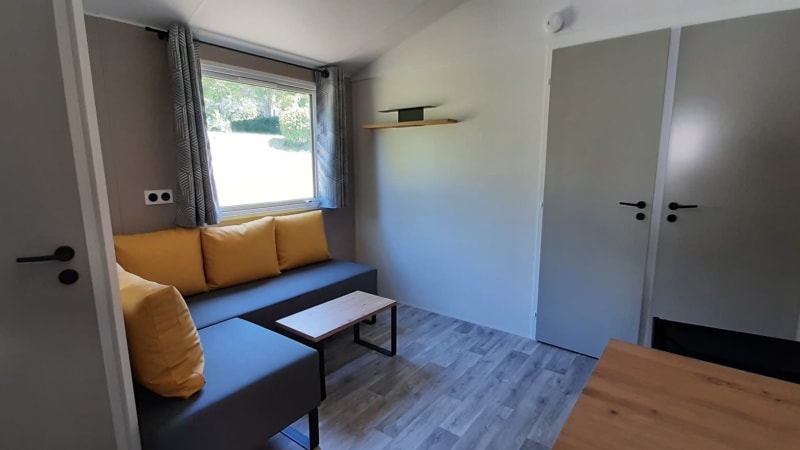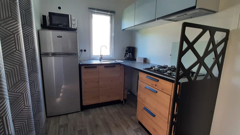 Von diesem Mobilheim-Typ haben wir Unterkünfte mit einem „dunklen“ und einem „hellen“ Interieur. Die Unterkünfte 45, 82, 83, 147, 148 und 149 verfügen über ein „helles Interieur“. Wenn du mit Wunsch buchst, kannst du die Nummer der Unterkunft selbst auswählen.