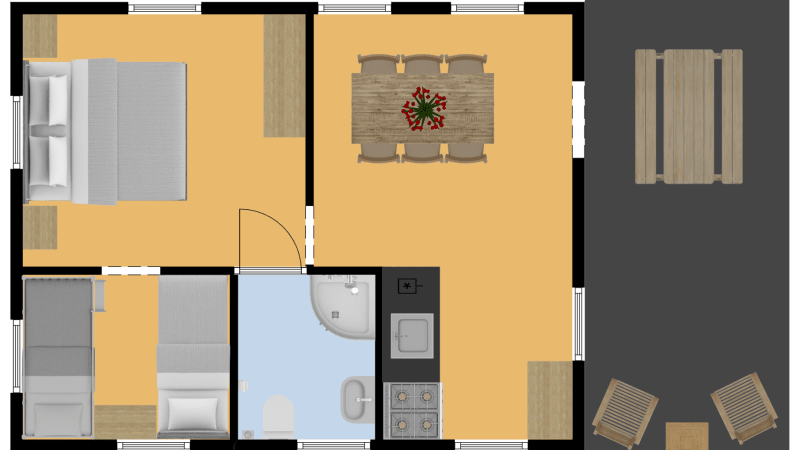 Mit der modernen und luxuriösen Einrichtung sind Sie mit allen Annehmlichkeiten ausgerüstet. Sie verfügen über ein eigenes Badezimmer mit Dusche, Waschbecken und Toilette.