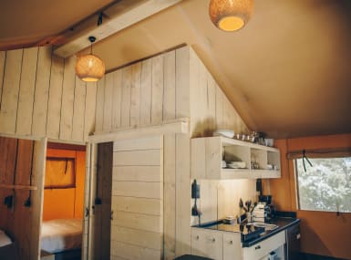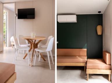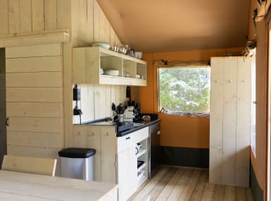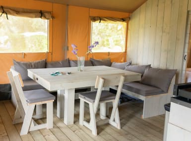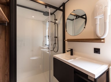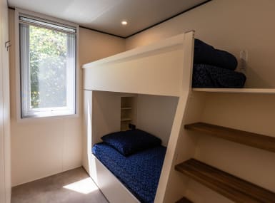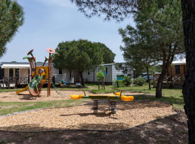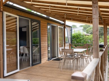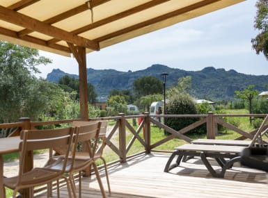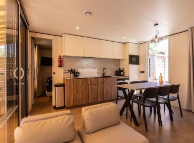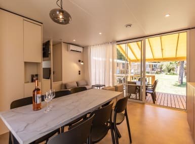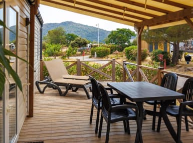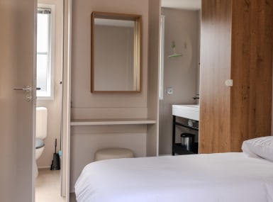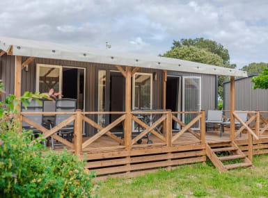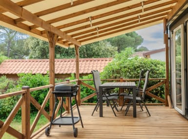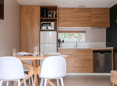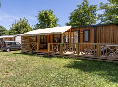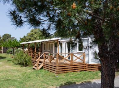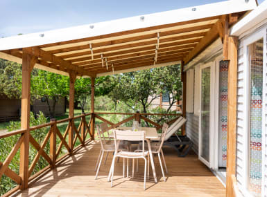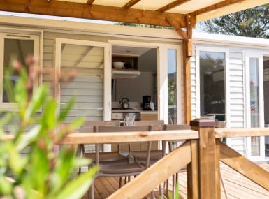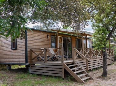 Für einen Urlaub mit mehr Annehmlichkeiten und Komfort bietet Ihnen Domaine de la Noguière vollständig eingerichtete Mobilheime mit Terrasse. Die Standardmodelle sind in zwei Varianten verfügbar: Für vier oder sechs Personen. Die Ferienhäuschen sind gepflegt und haben eine moderne, hippe Einrichtung. Die separaten Schlafzimmer in unseren Mobilheime sind ideal für Familien mit Kindern.