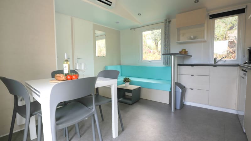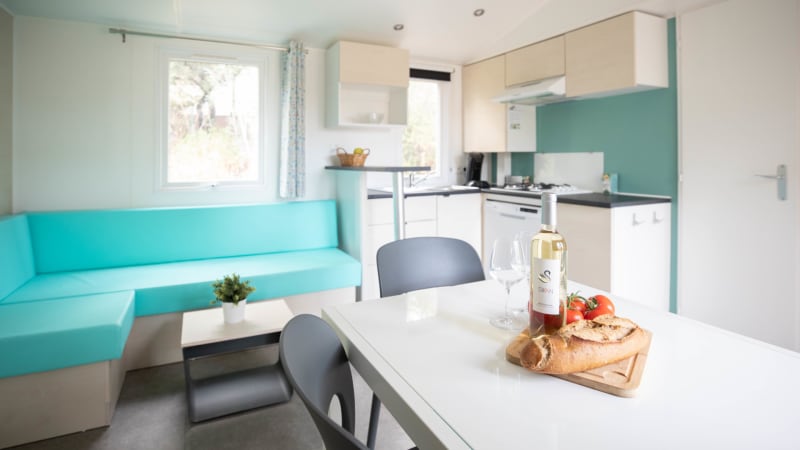 Dieses geräumige Mobilheim ist mit allem Luxus ausgestattet, und befinden sich zwischen Privatunterkünften. Sie haben auch einen eigenen kleinen Garten dabei. Außerdem verfügt dieses Mobilheim über: Klimaanlage, Grill und gemütliche Loungegruppe.