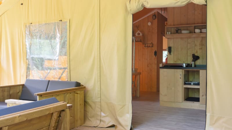 Zeit zum Genießen! Und wie kann man das besser zur Ruhe kommen als in der Drenther Natur? In diesem Safarizelt, das für 5 Personen ausgestattet ist, fühlen Sie sich durch die anheimelnde Einrichtung wie Zuhause. Hier finden Sie die perfekte Ausgangsbasis, um Ruhe und Weite zu genießen.