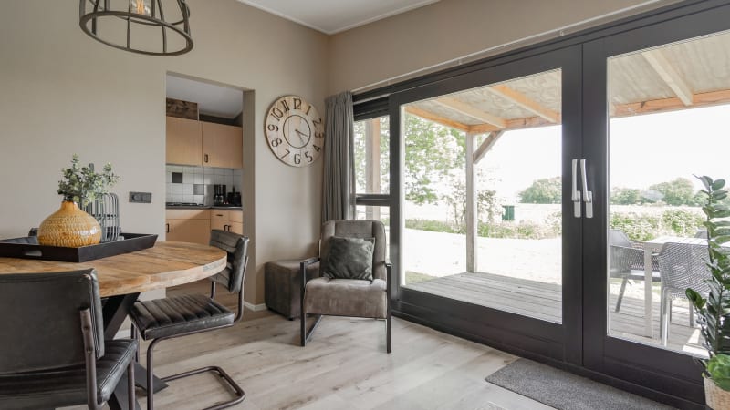 Für einen herrlichen Urlaub an den friesischen Gewässern mit vier Personen wählen Sie diese Dreizimmerbungalow mit fantastischem Blick auf die Wiesen und das Naturschutzgebiet. Der komfortable Bungalow verfügt über: