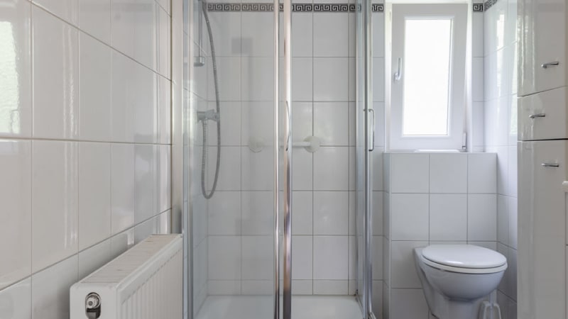 Badezimmer mit Dusche und Toilette