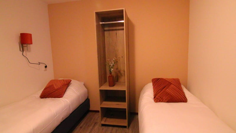 Die Schlafräume hatten eine gute Größe aber ich hatte leider jeden Morgen Rückenschmerzen von der viel zu weichen und durchgelegenen Matratze. Auch war mir der Kleiderschrank nicht ausreichend geräumig. Ein paar mehr Einlegeböden hätten dazu schon gereicht. Am letzten Abend gab es im Ferienpark wohl eine Art Fangspiel im Dunkeln. Es wurde bis tief in die Nacht (1Uhr) hinein rumgeschrien und mit einen Horn alle paar Minuten ein Lärm gemacht der auch durch die geschlossenen Fenster zu hören war.