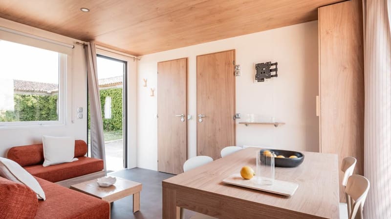 Mobilheim „De Hommel“ ist eine neue Unterkunftstype, die abgebildeten Fotos sind Zeichnungen.