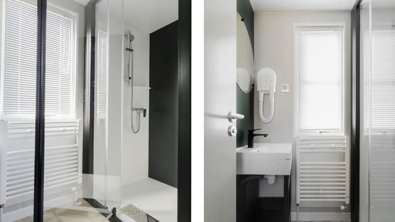 Badezimmer Es gibt zwei Badezimmer, beide jeweils mit einem Waschbecken und einer Duschkabine. Eines der Badezimmer verfügt über eine Toilette, und es gibt auch eine separate zweite Toilette.