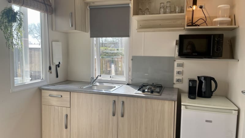 Kleines, aber feines Mobilheim, ideal für einen Urlaub für 2 Personen. Diese zwei Mobilheime liegen an einem zentralen Platz im Park und dennoch benötigen Sie weniger als fünf Minuten, um zum schönen Nordseestrand zu gehen.
