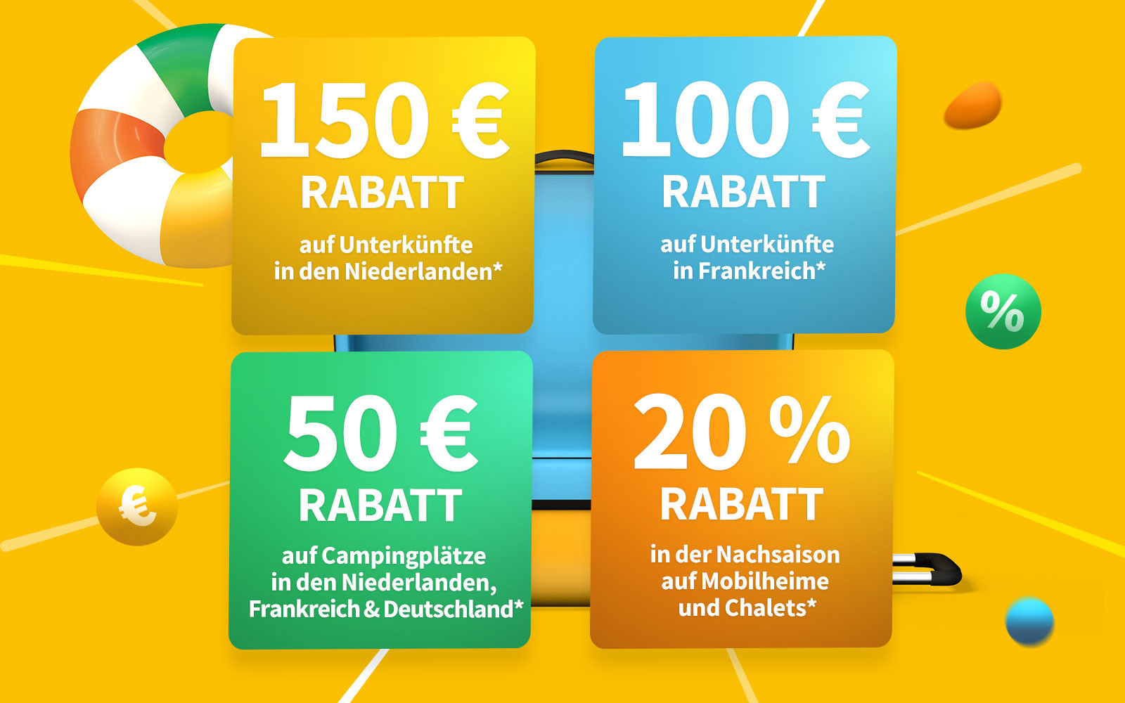 Ja! Unsere Ferienknaller sind zurück! Jetzt ist der richtige Zeitpunkt, um Ihren Urlaub für 2026 zu buchen und dank unserer 4 Urlaubsschnäppchen, die während aller Ferien und Feiertage gültig sind, von zusätzlichen Vorteilen zu profitieren.