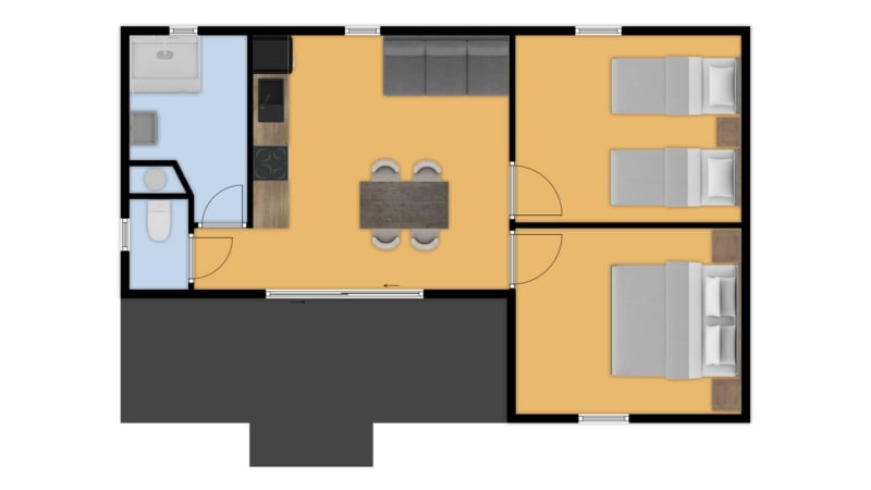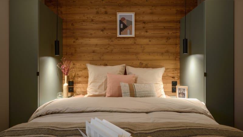 There is a bedroom with a double bed (160 x 200) and one bedroom with two single beds (80 x 200). All beds are equipped with pillows and single duvets. The rooms offer ample wardrobe space to store clothes. Adding a baby cot is only possible by removing another bed.