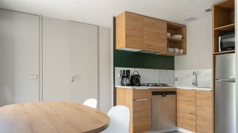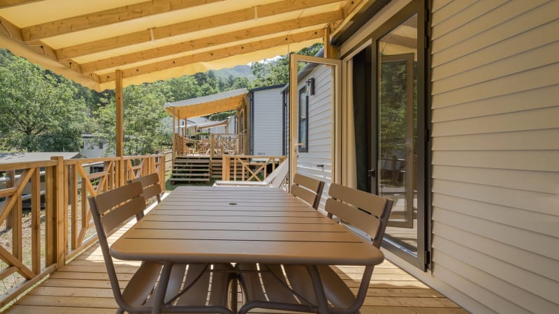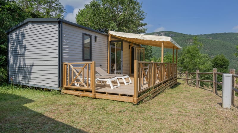 This fantastically located four-person mobile home is furnished with every convenience. Enjoy the wonderful view of the picturesque village of Cantobre. This mobile home has a luxurious bathroom and two spacious bedrooms and is also furnished with air conditioning.