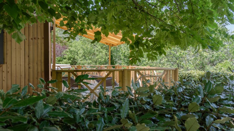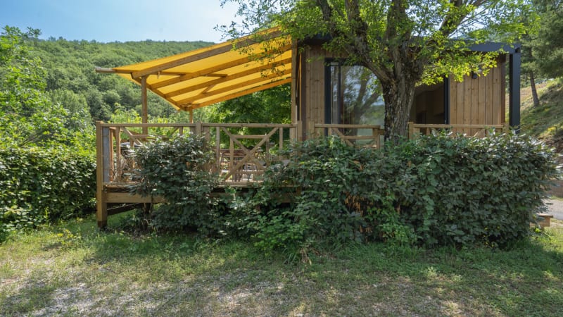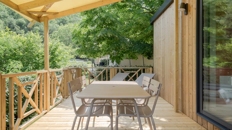 The luxury two-person Dourdou mobile homes are ideal for a romantic holiday together. They have two large sliding French windows that allow access direct onto the terrace, providing a wonderful feeling of space. The mobile home also has a veranda with garden furniture and is furnished with every convenience.