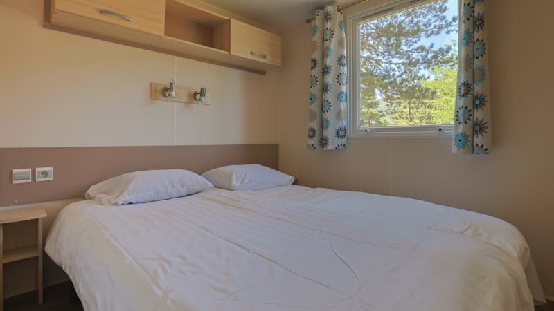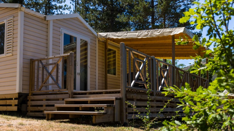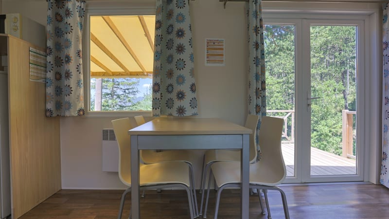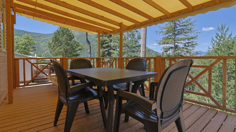 This type of trailer-chalet has a fantastic locations on our beautiful, terraced camping site. The view of the Castellane hills is there to make your holiday even better. A 4LCXL trailer-chalet is suitable for four people.