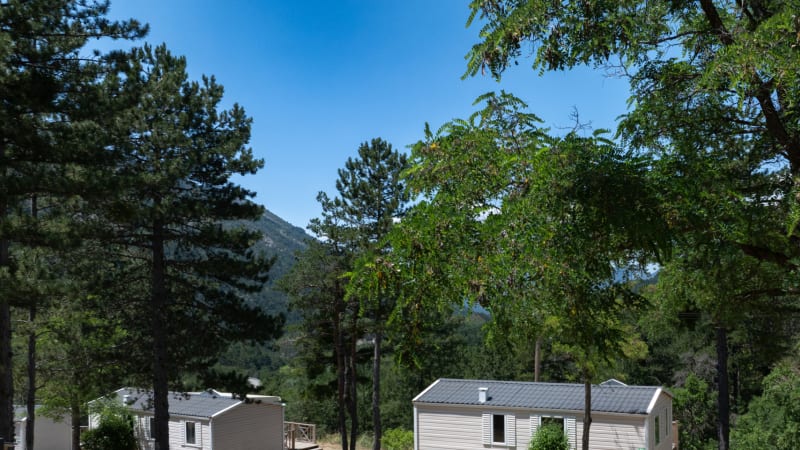 This type of trailer-chalet has a fantastic locations on our beautiful, terraced camping site. The view of the Castellane hills is there to make your holiday even better. A 4LCXL trailer-chalet is suitable for four people.