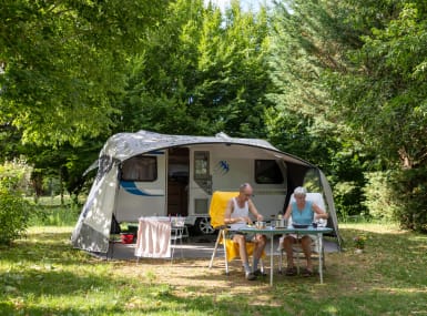 an average French camping site. They are sheltered by hedges and trees and surrounded by greenery. Every pitch has its own electricity connection and a water supply and drainage. The idyllic estate means that every pitch is still unique. If you like company, or if you have children with you, than a pitch next to the playground, sports field or recreation mere is also an option.