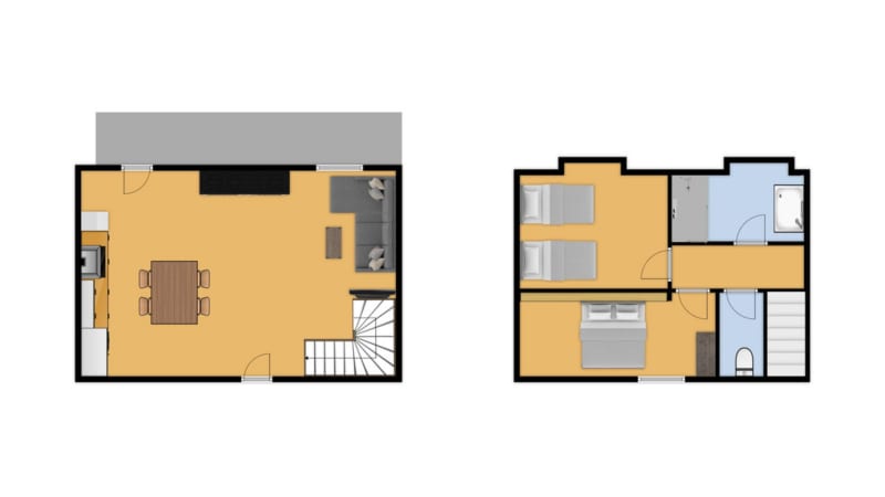 Both the 4-person and 2-person apartments have a spacious kitchen-living room. In the 4-person apartment, you’ll find a kitchenette, a 4-burner induction hob, a fridge, an electric oven, a microwave, a coffee maker, a dishwasher, and a sink with a mixer tap. There is plenty of storage space. The 2-person apartment is equipped with a kitchenette, a 2-burner induction hob, a fridge, a microwave, a coffee maker, a dishwasher, and a sink with a mixer tap.