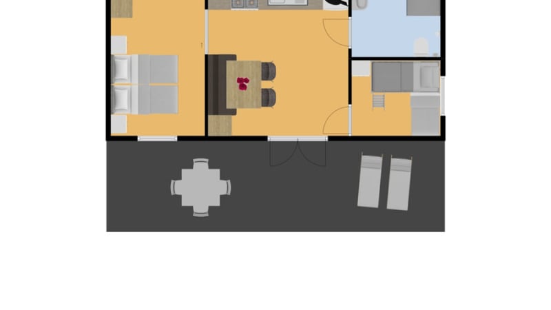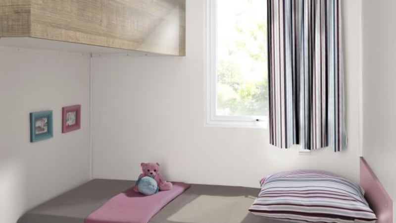 The mobile home has extra-large patio doors opening onto the spacious, semi-covered terrace. There is luxurious garden furniture, including two comfortable loungers and a barbecue. The mobile home has space to park one car. The mobile home is accessible thanks to a special entrance.