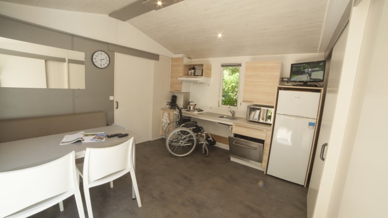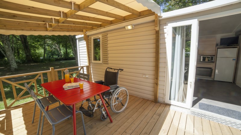 In the middle of the beautiful French countryside you will find this four-person mobile home accessible to wheelchair users.The detached mobile home is located in a beautiful, central location and is simply furnished for a lovely peaceful holiday.