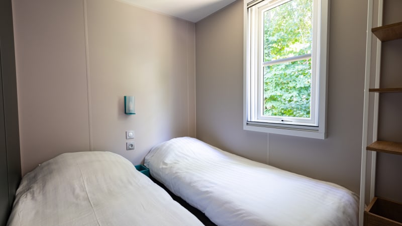 Bedrooms The mobile home has three bedrooms, one of which has a double bed (160x200) and the other two each contain two single beds (80x200).