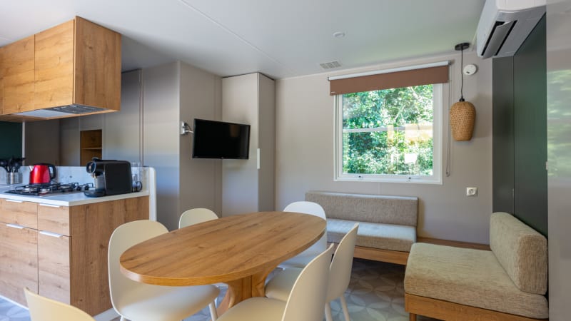 Our six-person mobile home with a double bathroom is in the middle of the French countryside. It is set in a beautiful, spacious area and it is furnished with every convenience.