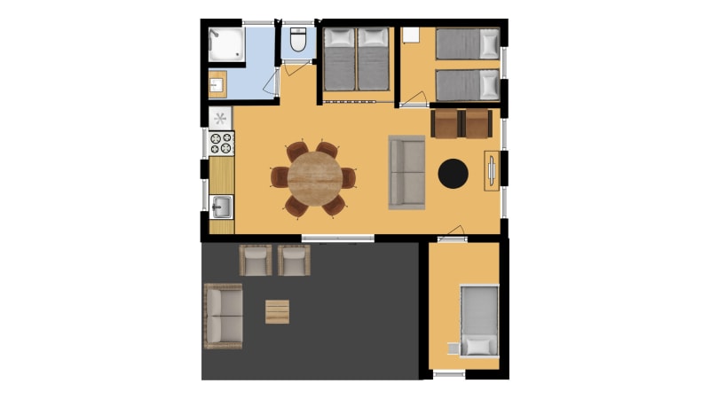 You often see farms in the Drenthe countryside with a barn. You can get that Drenthe feel when you stay in RCN de Noordster in the Hooiberg lodge. The accommodation is suitable for six people. The living room has an open kitchen, there is central heating and a separate douche and toilet room. There is a two-person box bed, one large bedroom with two box-spring beds and a bedroom with a bunkbed. There is a covered terrace with terrace furniture when you can enjoy balmy evenings in the country till late at night.