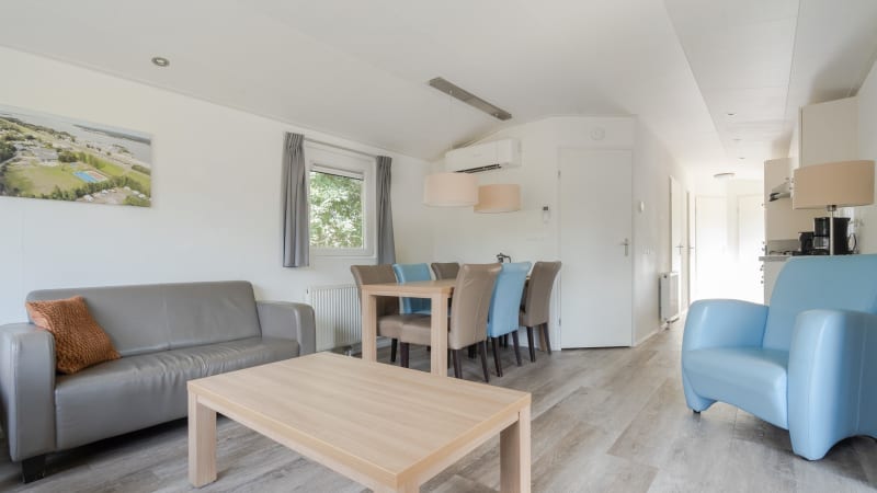 These are a luxuriously and spaciously furnished chalets. They are centrally located in a quiet spot in a spacious field, in the middle of which there are various pieces of playground equipment. Delightful accommodation for six people on the Wolderwijd in Flevoland.