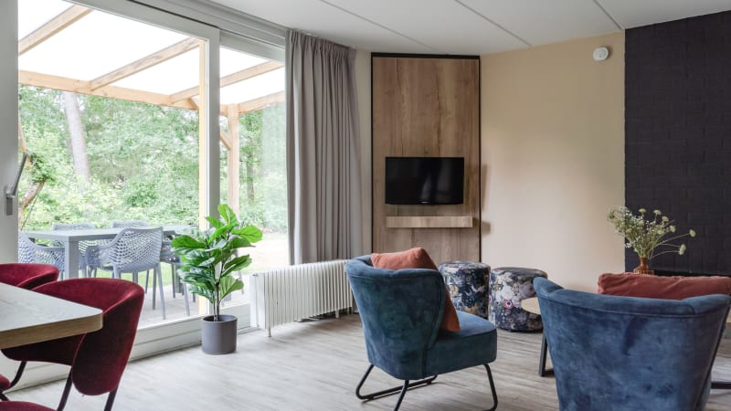 Four-room bungalow with open plan kitchen, microwave, central heating and fireplace. Shower, toilet, three bedrooms with two single beds each, south-facing terrace. Bungalow for patients with CARA (Chronic Aspecific Respiratory Disease) available upon request. Type Kraanvogel B167 does not have a fireplace.