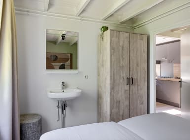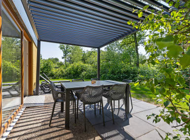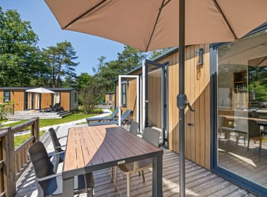 They are well-lit by natural sunlight and the living room and open kitchen overlook the woods. The Roggeberg also has holiday accommodation where smoking and pets are not permitted. These are fashionably furnished and have a garden with a covered terrace. If you want a real camping holiday, but you don't want to be messing around with tent pegs, etc., then you can rent a comfortable mobile home or choose one of our new Wold-Lodges.