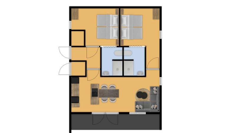 Bathroom The bungalow has two bathrooms. Both bathrooms are equipped with a shower, washbasin and toilet.