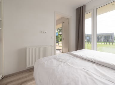 view across the Veerse mere. There is a sailing and a surfing school in the park so there'll be lots to see. The chalets and bungalows are also provided with every convenience. One of the six-person bungalow types has been entirely renovated and some of the six and eight-person bungalows even have their own sauna.