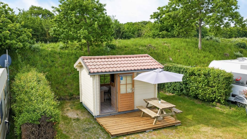A simple camping chalet for two people. Compact yet complete. Perfect for one or two nights or for a real camping holiday. The simplicity of camping, but with the comfort of a small cabin! Ideal for a cycling holiday or a beach break.