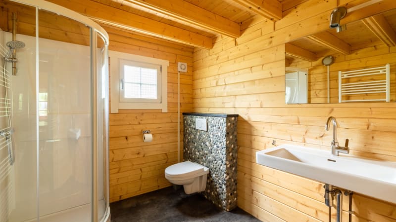 Bathroom The Beach Lodge has a bathroom with washbasin, toilet and shower cabin. There is also a separate second toilet.