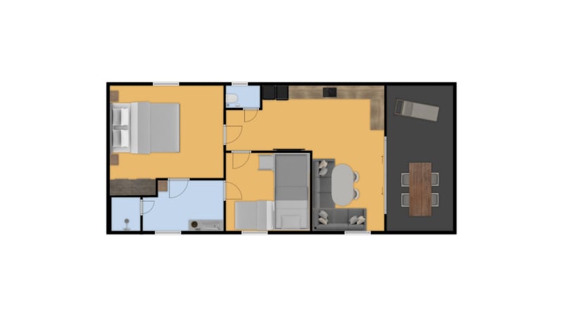 Installez-vous sur la grande terrasse semi-couverte (22m²) aménagée d’un mobilier de jardin confortable et profitez de la nature magnifique autour de vous. Il y a une place de parking à proximité du mobil-home.