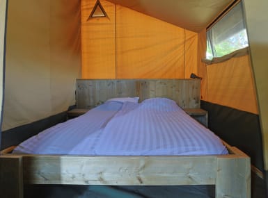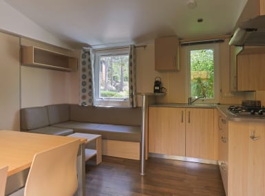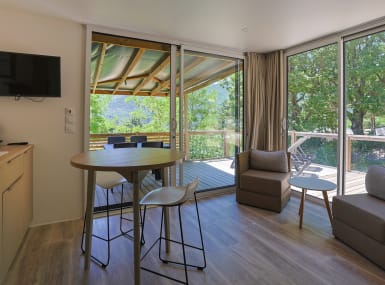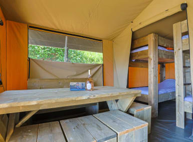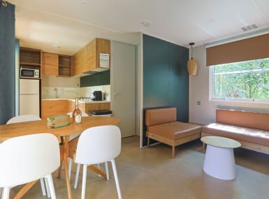 Nos hébergements en mobil-home et tente lodge offrent une expérience de glamping unique. Plongez au coeur de la nature, tout en appréciant le confort de nos mobil-homes de luxe et chalets spacieux, conçus pour accueillir jusqu'à six personnes.