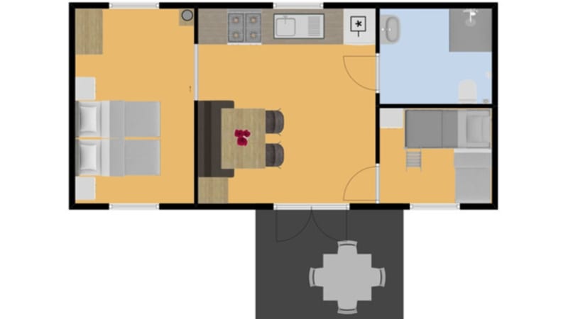 Le mobil-home est accessible par une rampe spéciale et dispose d'une grande terrasse (24m²). Sur cette grande terrasse, vous trouverez une table de jardin avec des chaises, un parasol et deux chaises longues. Vous pouvez garer votre voiture près de l'hébergement.