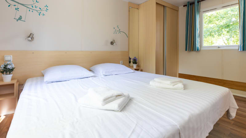 Il s'agit d'un hébergement non-fumeur. Le mobil-home est équipé d'un chauffage électrique. Les animaux de compagnie sont autorisés. Les autres installations du parc sont également accessibles aux personnes en fauteuil roulant.