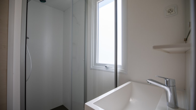 Salle de bains La salle de bains est équipée d’une cabine de douche et d’un lavabo.