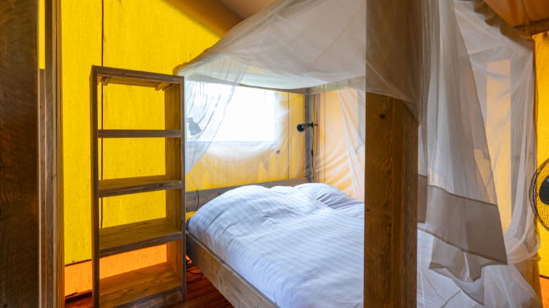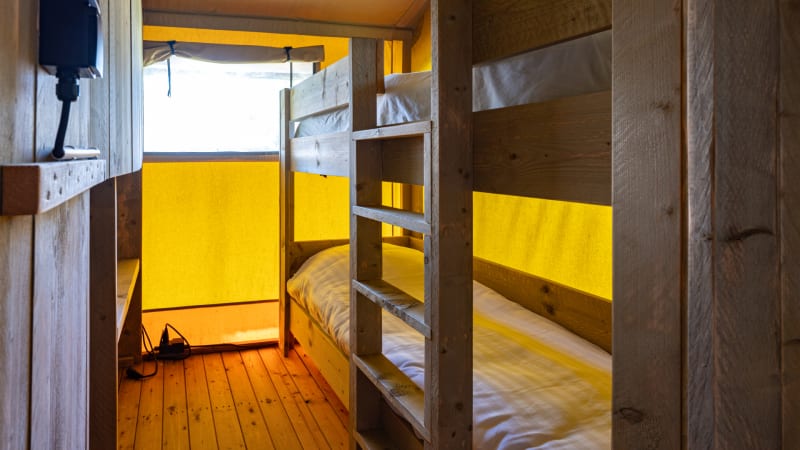 Vous voulez camper en pleine nature mais vous n'avez pas votre propre tente ? Cette tente Safari indépendante et robuste, pouvant accueillir six personnes, est exactement ce qu'il vous faut. Vous vous y sentirez tout de suite chez vous grâce à son intérieur cosy et chaleureux. Elle est équipée de toutes les commodités nécessaires pour un séjour de glamping en pleine nature.