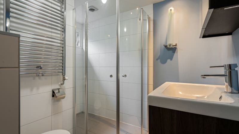 Chambres : Il y a deux chambres avec des lits boxspring doubles de 1,40m chacune, une chambre avec lit superposé et une chambre spacieuse avec un lit boxspring double de 1,60m.