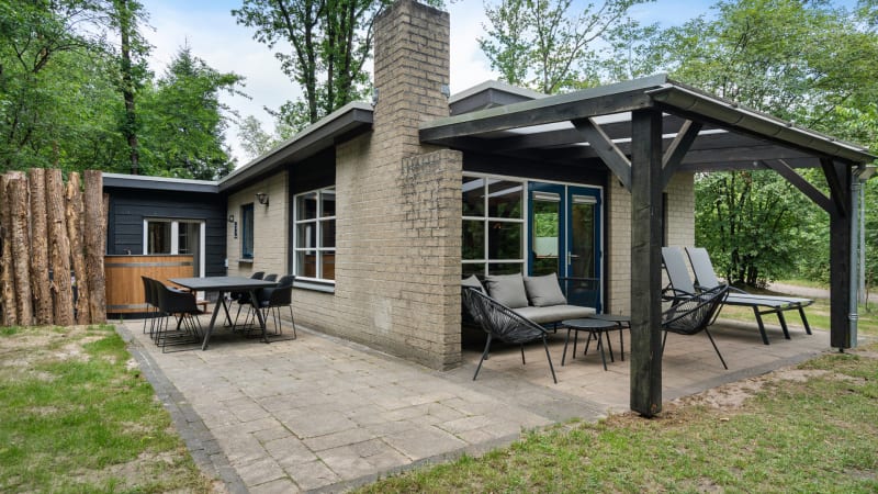 Extérieur : Sur la terrasse, vous trouverez du mobilier de jardin confortable. Vous pouvez garer votre voiture directement à côté du bungalow.