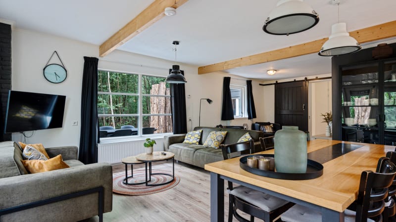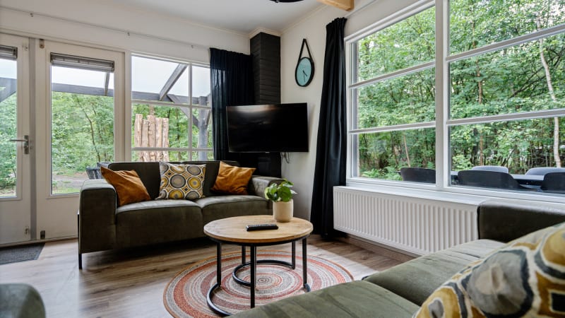 Ce spacieux bungalow au milieu de la forêt offre tranquillité et espace, et peut être réservé avec jacuzzi à partir du 11 avril 2025.